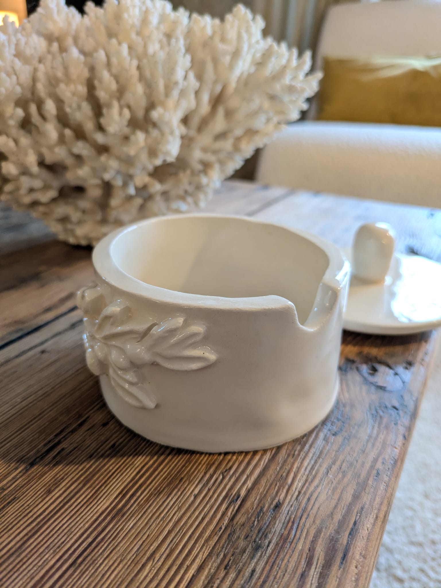 Peça única criada com dedicação artesanal — feita inteiramente à mão, sem o uso de moldes. Inclui certificado de autenticidade.